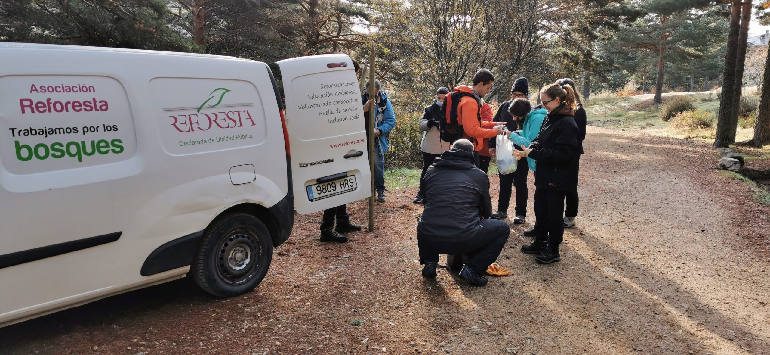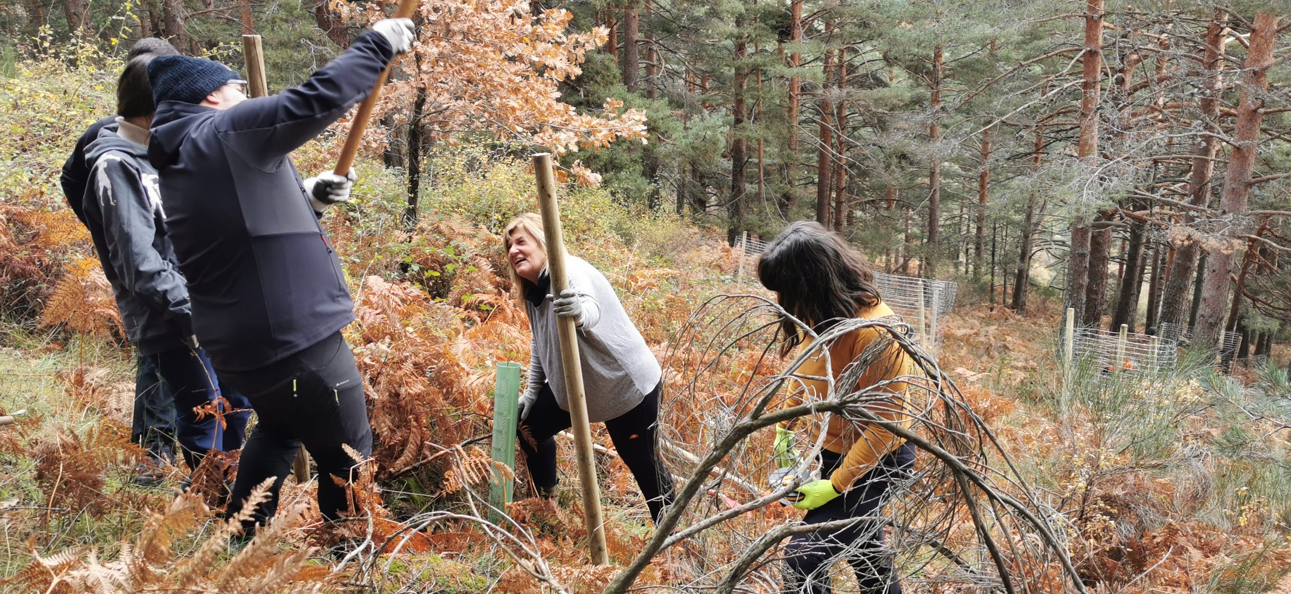En colaboración con Reforesta, realizaron trabajos de cercado de árboles autóctonos replantados, semillado de fresnos y replantación de flores silvestres, en vías de extinción en la sierra madrileña.